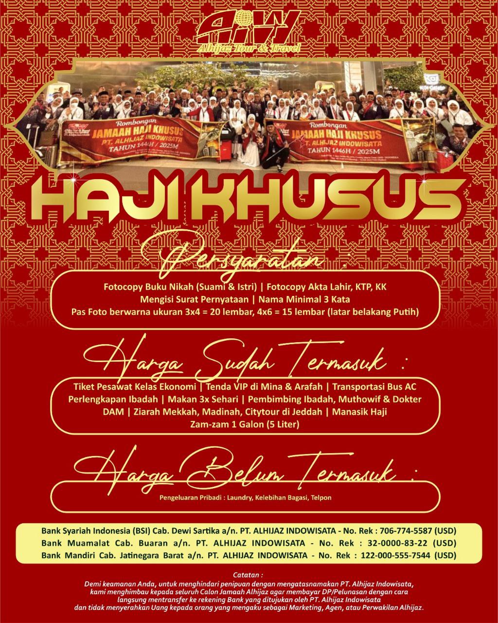 - Pukul 18.55, jamaah Insya Allah akan diterbangkan kembali menuju Tanah Air dengan menggunakan maskapai Saudi Airlines dengan nomor penerbangan SV816.